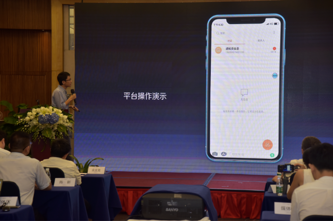 为增强社会公众对“反通信诈骗”溯源公益平台的分析,帮助用户更好防范诈骗风险,本次发布会现场特别设置了“反通信诈骗”溯源公益平台介绍及演示环节,艾弗森贝博ballbet官网科技区块链事业部总经理李剑波现场为到场领导嘉宾进行了演示及原理讲解。