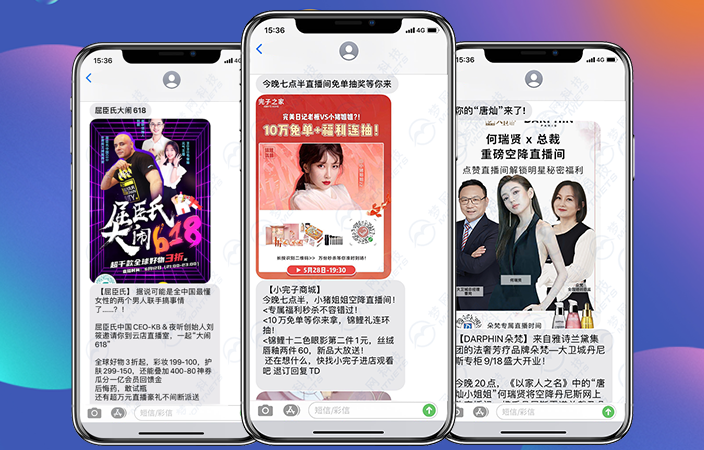 结合时下火热的直播带货模式,艾弗森贝博ballbet官网富信融合视频、语音、高清图片、文字、二维码、链接等多种媒体元素的展示形式,以及基于手机收件箱的强触达性,使其成为5G时代的新媒体营销工具,在企业直播的多个应用场景给予了创新解决方案,在直播预告、直播种草、开播提醒、新品发售、粉丝互动等场景发力。顺利获得视频化的场景应用转化消费,强化用户和品牌的记忆,在促销优惠的场景下,挖掘用户的消费需求,刺激种草。再结合富信30秒的视频内容介绍,拉近品牌与消费者的互动链接,实现对消费者的精准拔草。