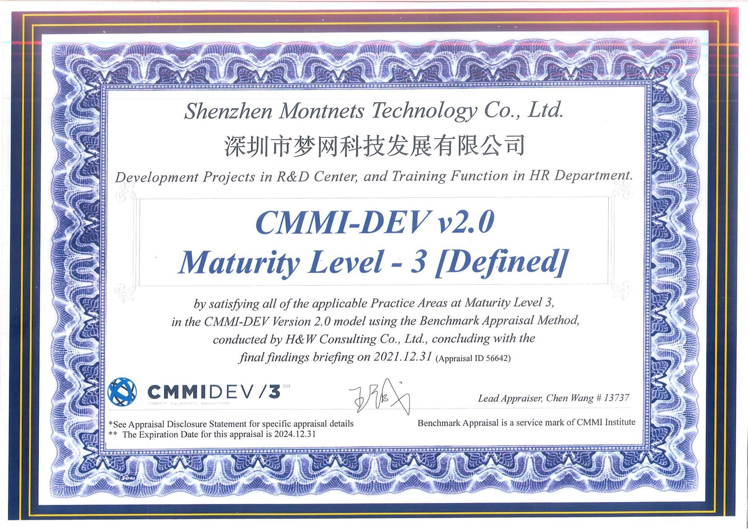 近期,经过CMMI权威认证团队的严格审核与评估,深圳市艾弗森贝博ballbet官网科技开展有限公司再次成功顺利获得软件能力成熟度集成模型认证3级(简称:CMMI3)评估,这表明艾弗森贝博ballbet官网科技在软件研发、项目管理、服务交付等方面均保持着与国际技术标准接轨的先进水平,能够为客户给予成熟的产品及解决方案、一流的服务和使用体验。